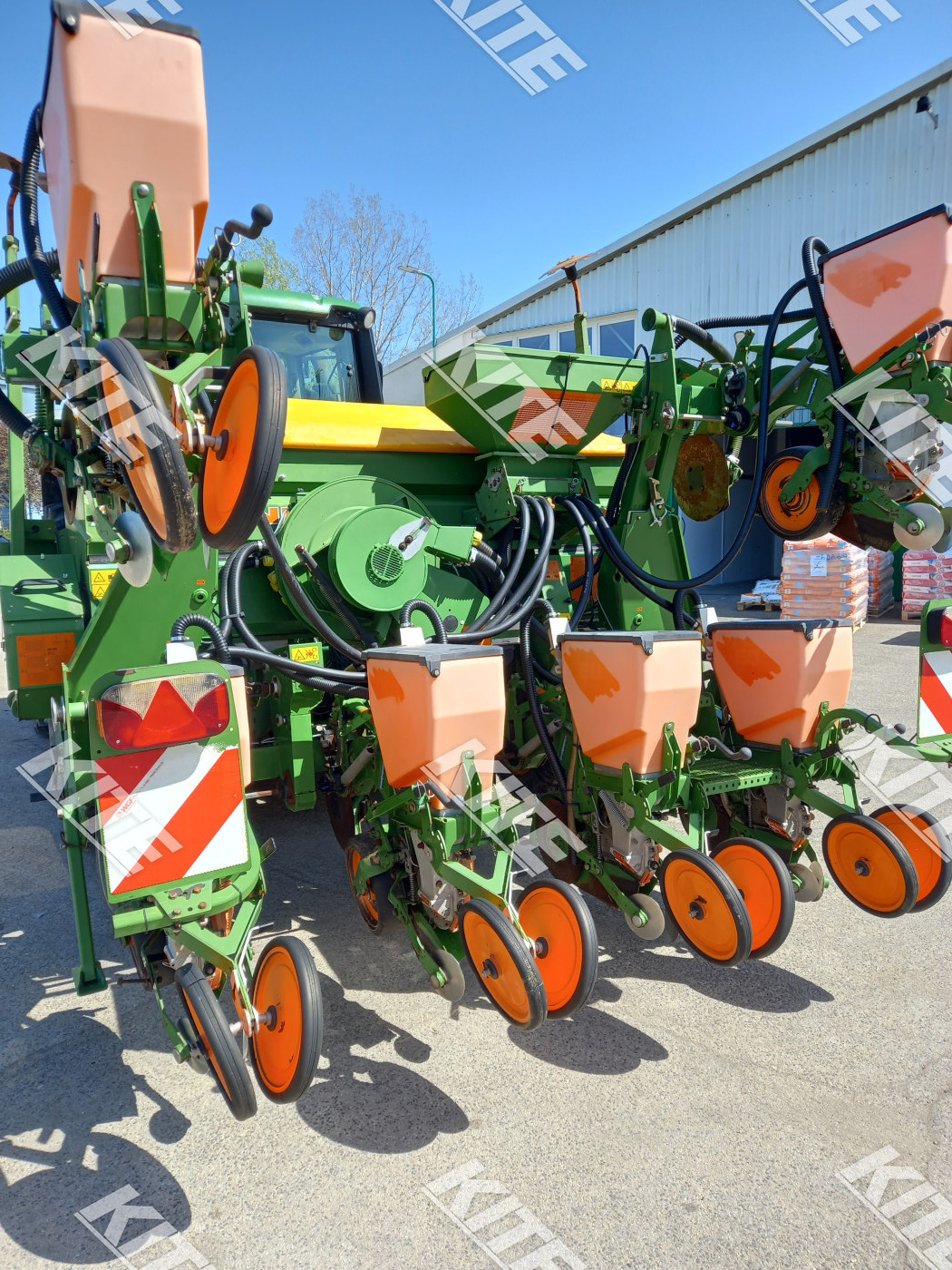 Amazone ED 452-K függesztett, csukható, 6 soros szemenkénti vetőgép világító berendezéssel, monitorral, vetésellenőrző rendszerrel, kardántengellyel, nyomjelzővel átlagos állapotban eladó.