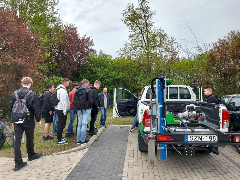 A gyakorlati bemutató során valós mintavétel is történt, amely során a hallgatók testközelből láthatták a folyamatot, beleértve a mintavevő jármű által rögzített adatokat és a nyomon követhetőség biztosításának módját. A rendszer egyik kulcseleme, hogy a mintavétel teljes folyamata dokumentált és visszakövethető, ami hosszú távon megalapozza a pontos tápanyag-tervezést. A talajmintavételezés iránt nagy érdeklődést mutattak a hallgatók, amit a sok kérdés is jól tükrözött, így a bemutató valóban interaktív, tartalmas párbeszédet eredményezett.